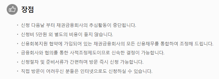 - 원금 감면: 최악의 경우 원금의 최대 90%까지 감면이 가능합니다.